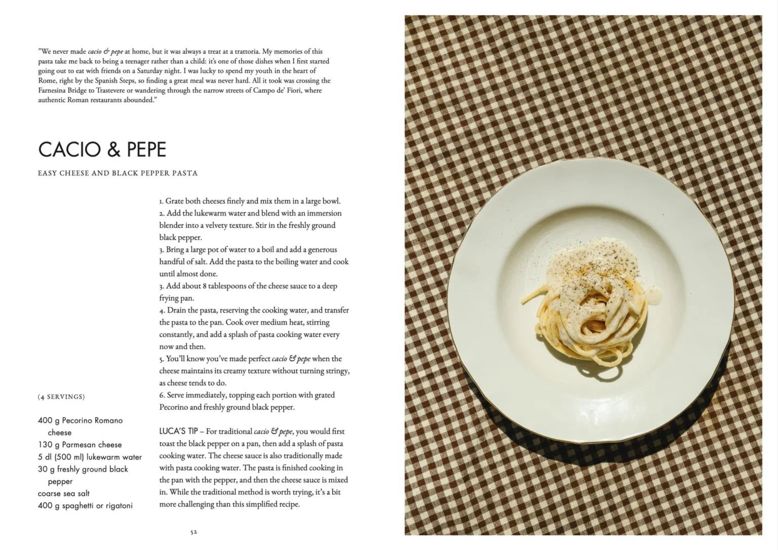 Embark on a culinary journey under the blazing sun, from parmigiana di melanzane to carbonara “done wrong”, minestra di verdure and pizzette – without forgetting nonna’s sweet treats! The book is packed with 40 everyday recipes loved by the Platania family, many of which have been passed down through generations. Each recipe evokes Luca’s precious memories from his childhood and youth spent in Rome.