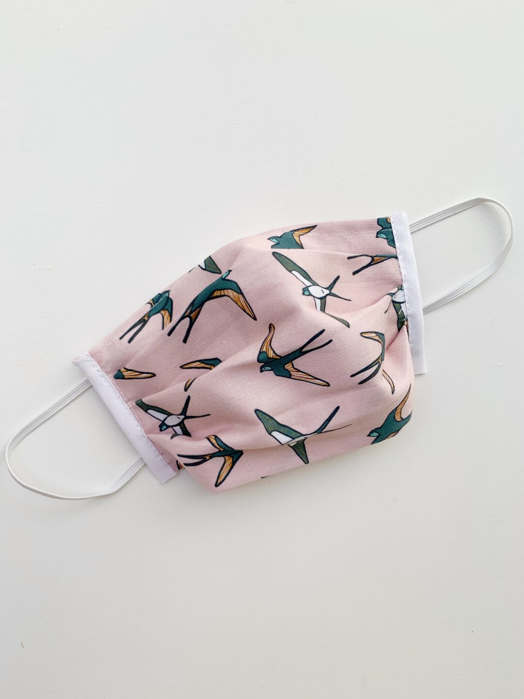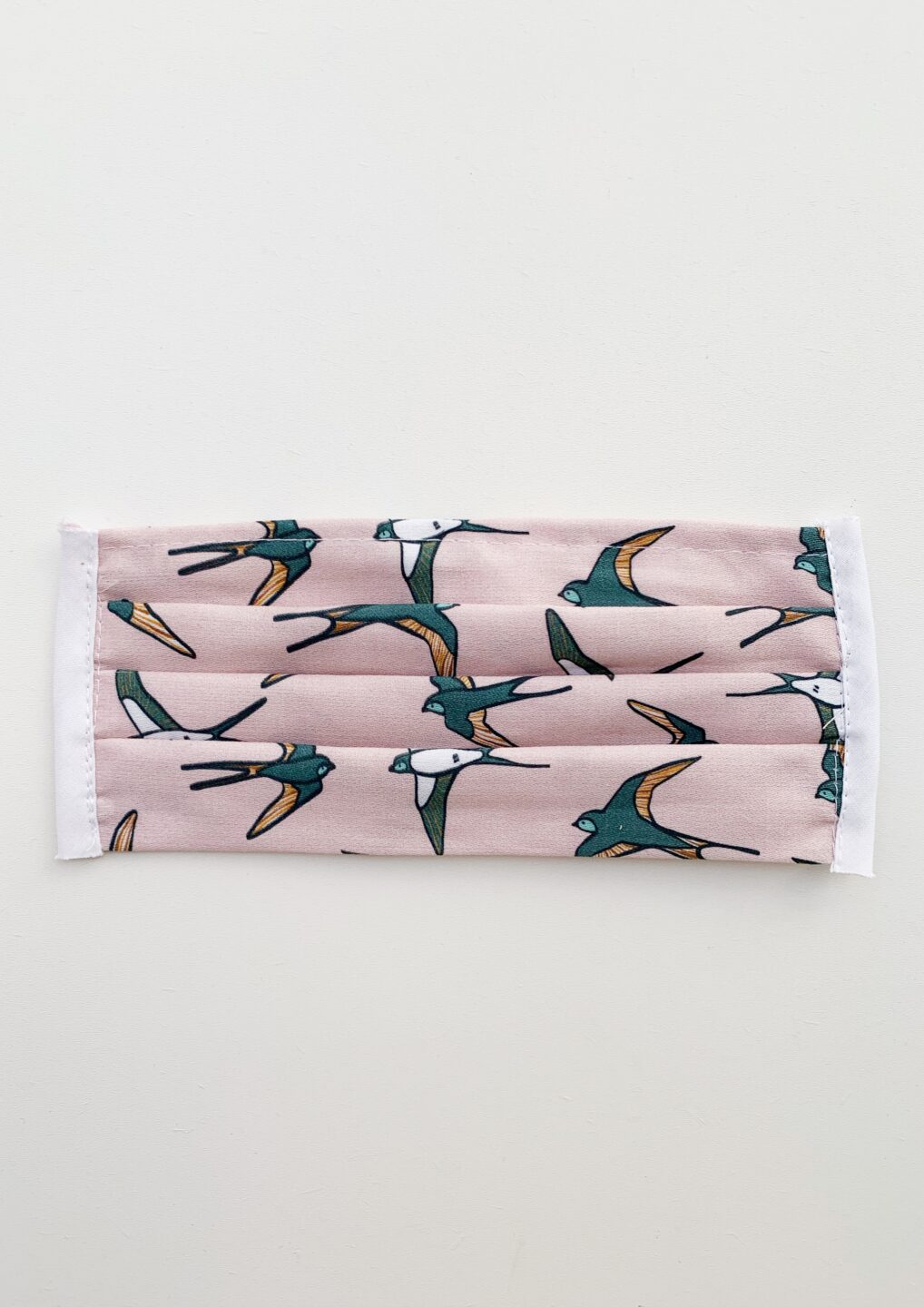 Straight with tightly sewn folds, elbow type. This allows the masks to be expanded in height so that they can cover the face and nose.