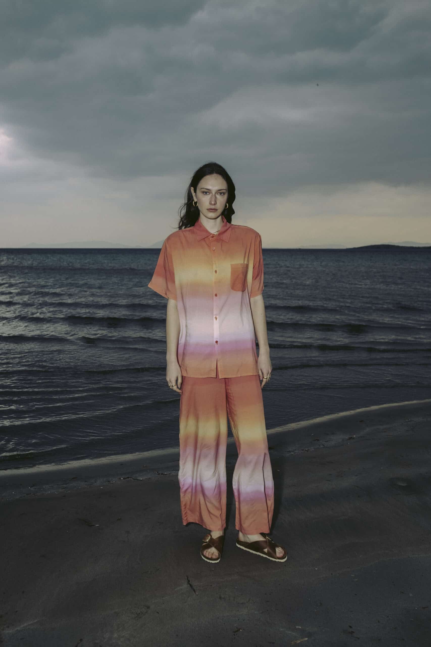 Radiating inspiration from the Greek sun, these pants have been printed in our beautiful “Magic Hour” fabrication ,