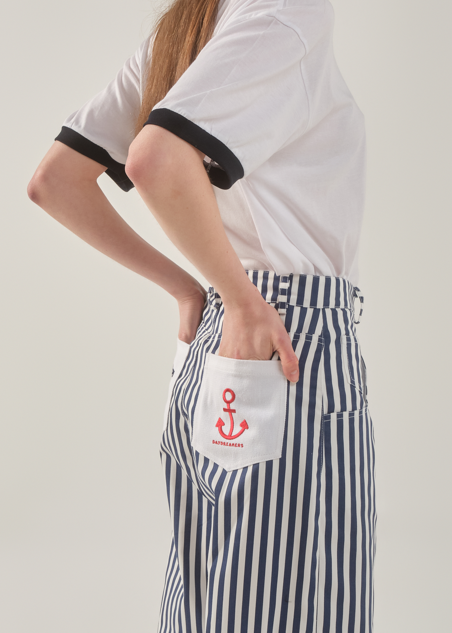 Both back pockets are detailed with signature embroidered Daydreamers graphics, adding a distinctive branded touch to the nautical base.