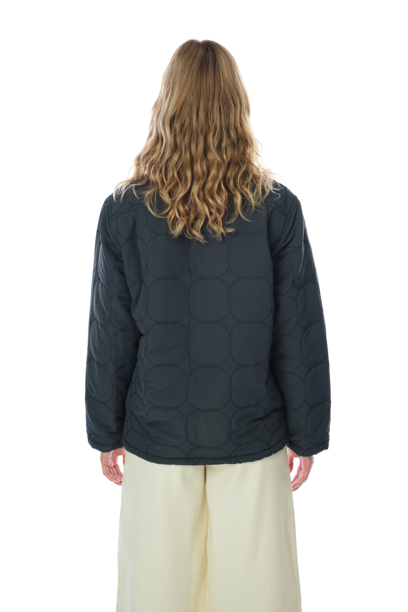 A classic dark green quilted jacket with a soft fleece inner lining for extra warmth and comfort. Timeless and stylish, it combines practicality with a refined silhouette the perfect outerwear piece for cold days and effortless everyday looks.