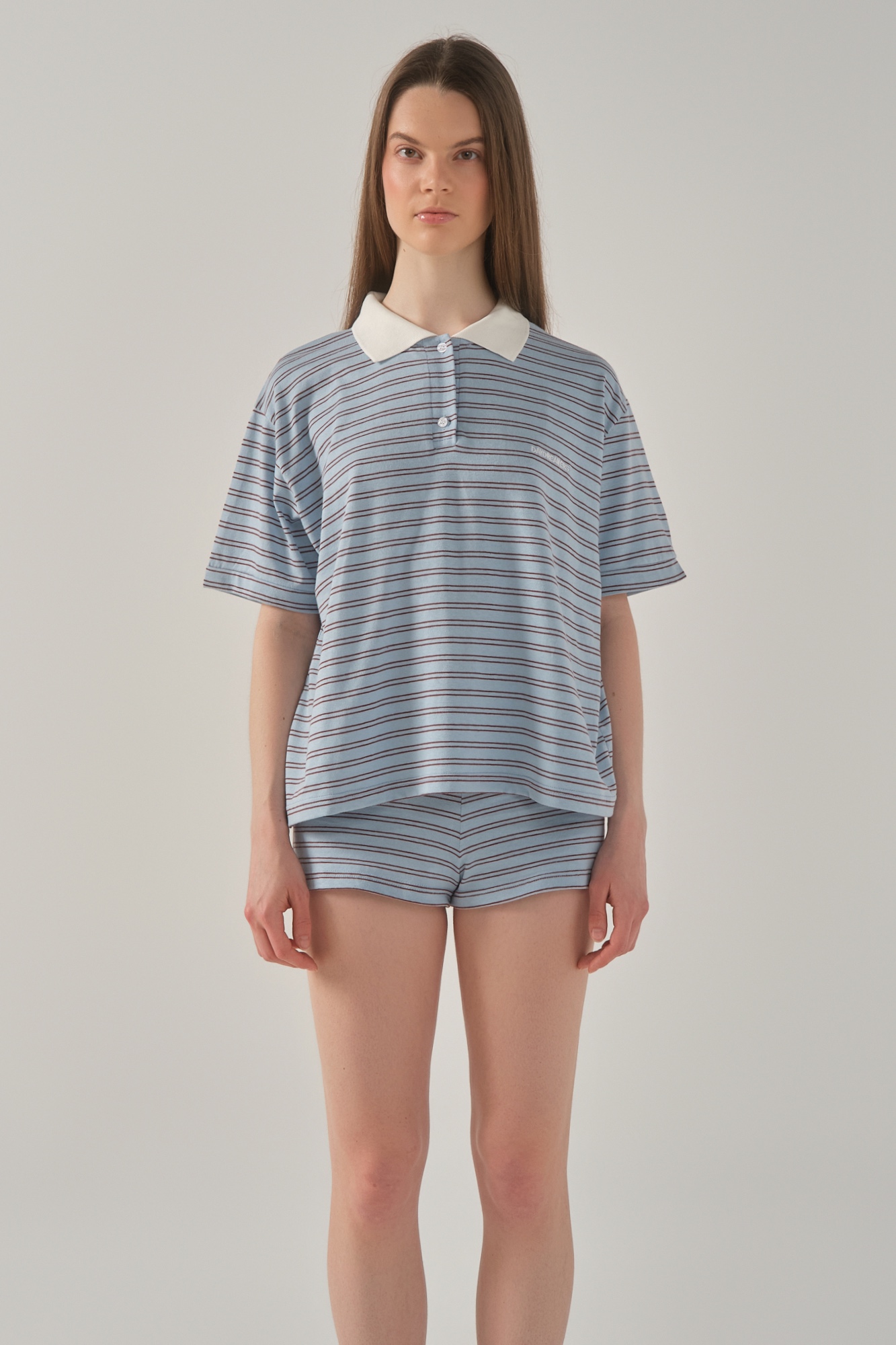 Daydreamers The Brand The Boy Polo Tee Striped Light Blue