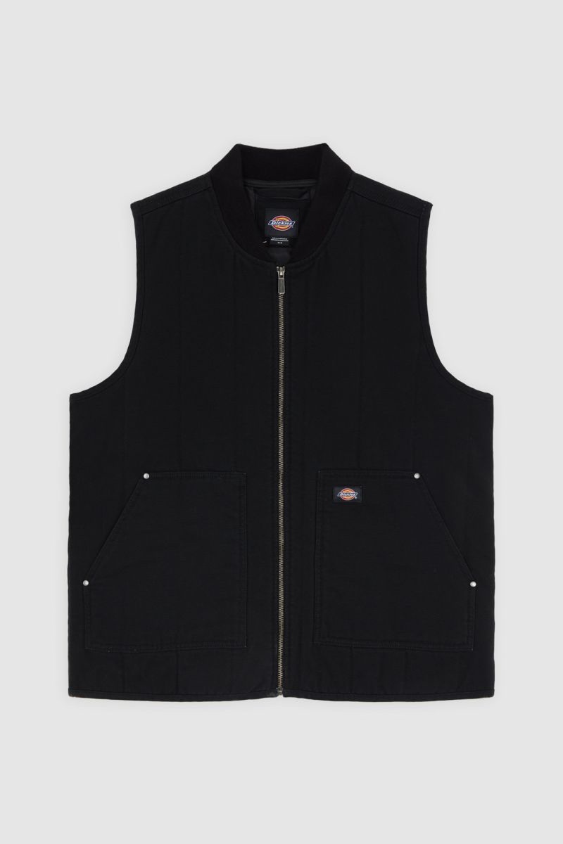 This quilted canvas gilet is a warm and rugged vest jacket that’s ready for work or adventure. Made from slightly lighter comfort-washed cotton canvas with a quilted taffeta lining, this durable and stylish workwear gilet has low pockets with metal trims and rivets, a bomber collar, armhole binding, a full metal zip, and our signature woven Dickies label. Layer it up or down between the seasons