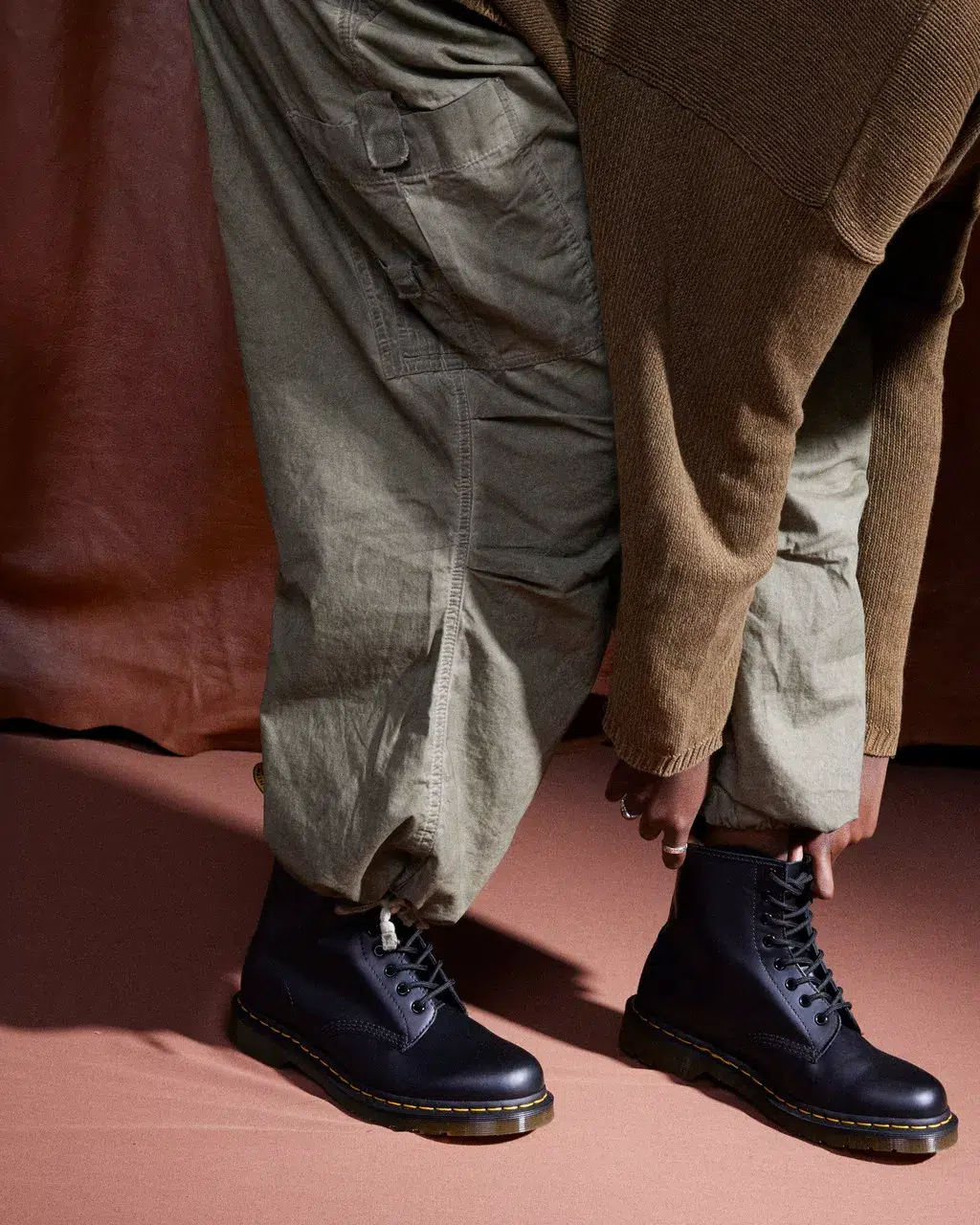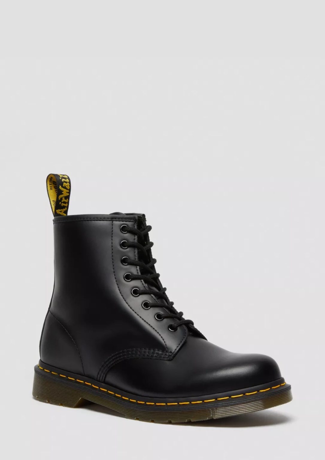 The 1460 8-eye boot is the Original Dr. Martens boot. Born 1st April 1960 — and named for the date — it’s instantly recognisable by its signature yellow welt stitching, grooved sole, and heel loop. Initially chosen for its comfort and reliability by postal workers and others who spent all day on their feet. Later adopted by musicians and fashion pioneers who took it from street to stage — and everywhere in between. The wide, rounded toe shape and air-cushioned sole keep you bouncing even on your longest days. And the durable Smooth leather shapes itself around you — more yours with every wear.