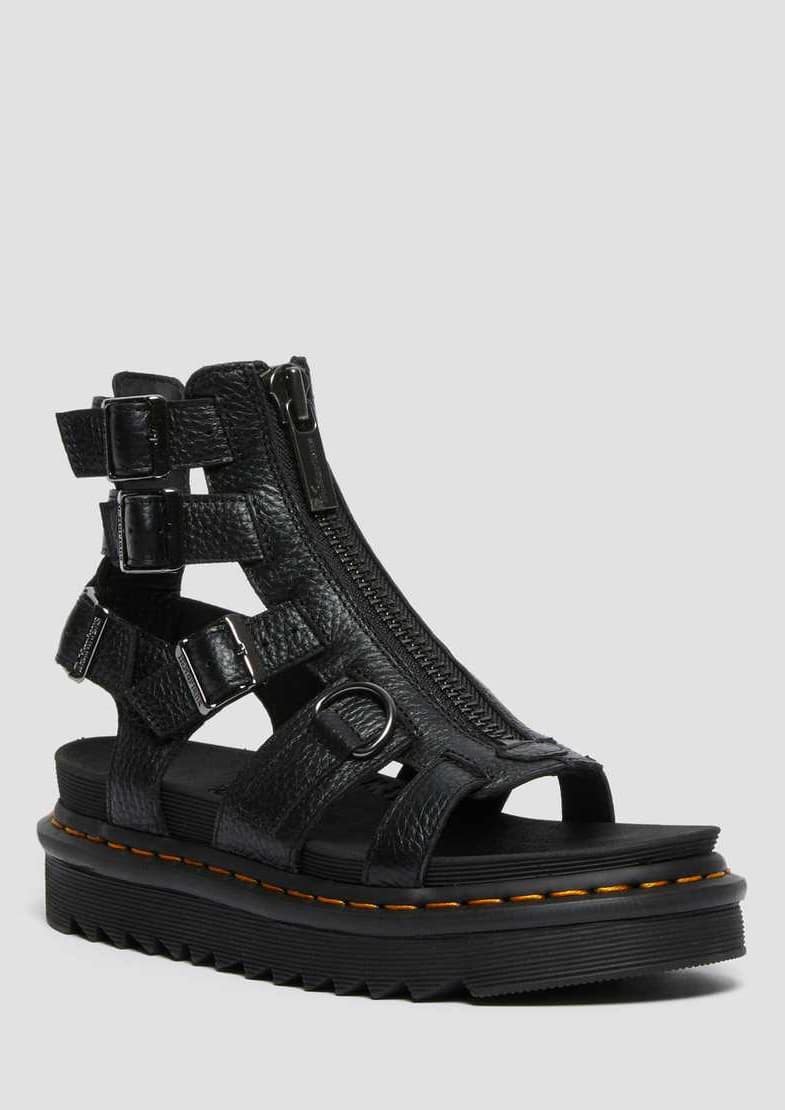 Built for the bold. For our new Olson sandal, we’ve cranked the attitude up to max volume. Designed with a brand new gladiator-style upper, they’re made from our soft, smash-hit Milled Nappa leather. A front zip and adjustable buckles give the sandals easy on/easy off access, and Docs DNA is reinforced with yellow welt stitching.