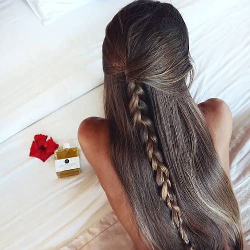 For a pre-wash treatment, apply a few pumps of oil through your scalp and hair and particularly on the ends.