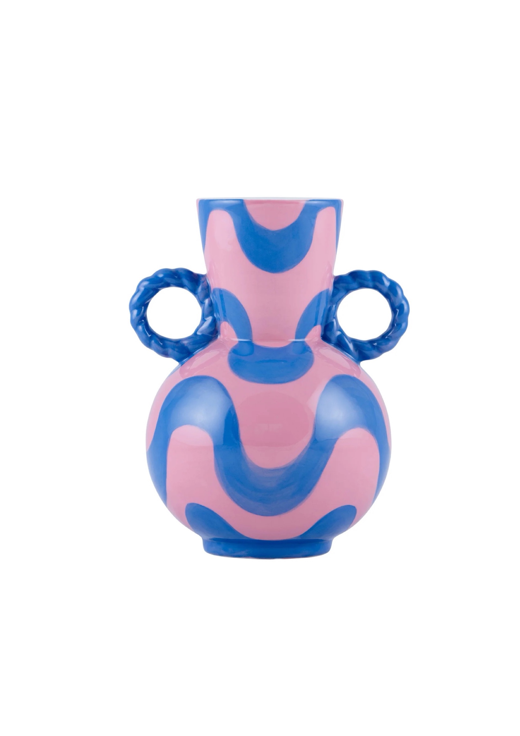 Enhance your floral display with the ceramic Rosalía vase from Qué Rico. This Belgian-designed vase, inspired by the lively Spanish lifestyle and featuring the colourful Río Retro pattern, adds a ray of sunshine to your home. With its organic shape and funky colour combination of pink and blue, this handmade vase is a true eye-catcher in any interior. As it is hand-painted, every piece is unique! Gift packaging included.