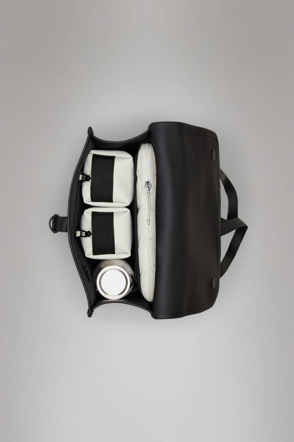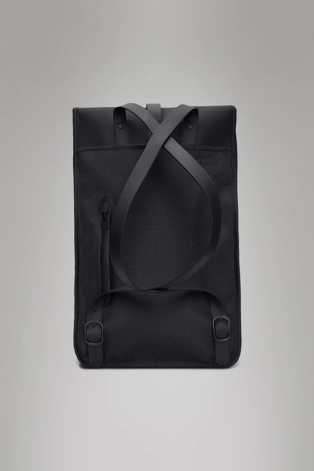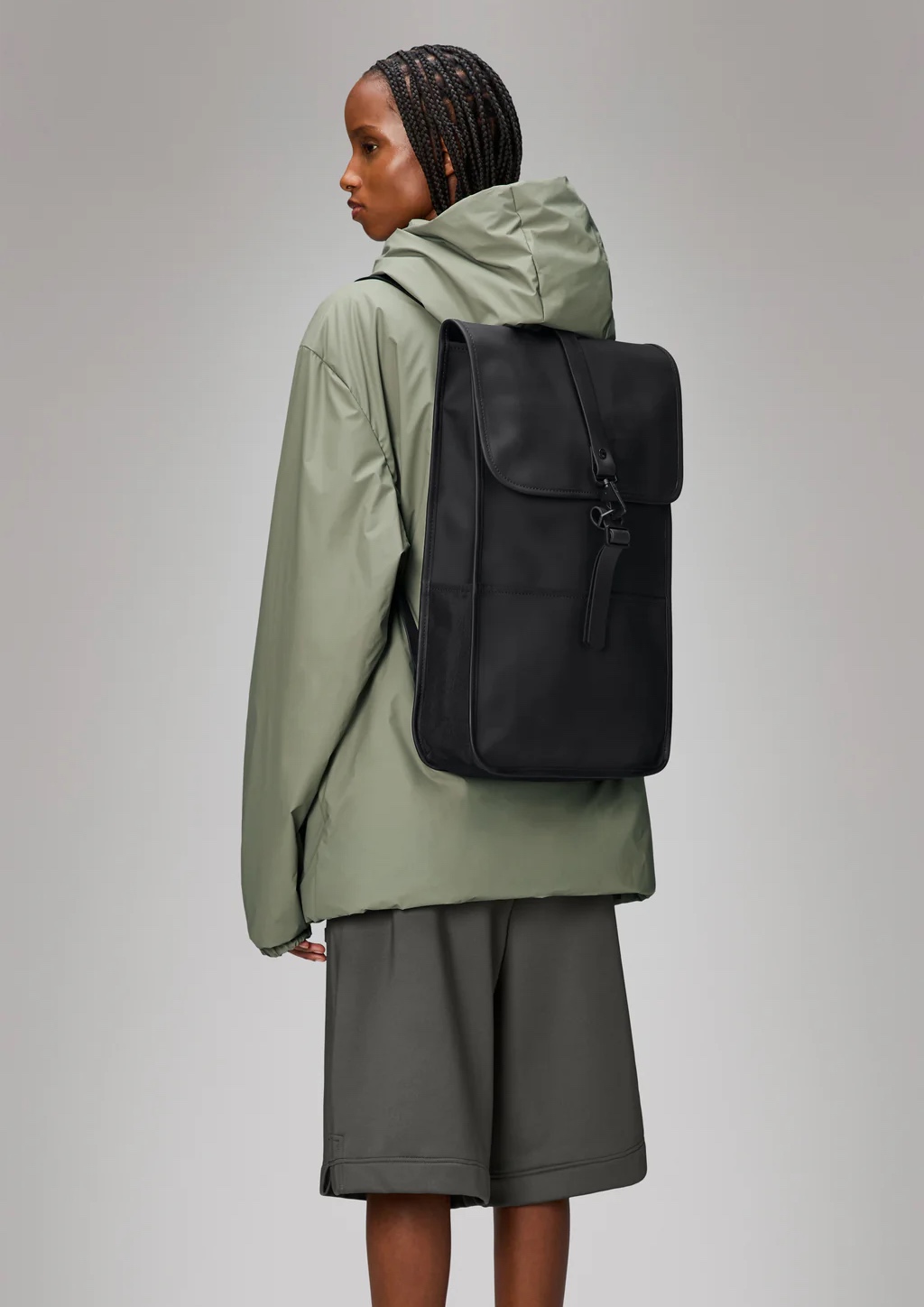 Backpack is cut from Rains’ signature PU fabric, engineered for carrying strength, durability and a smooth feel.