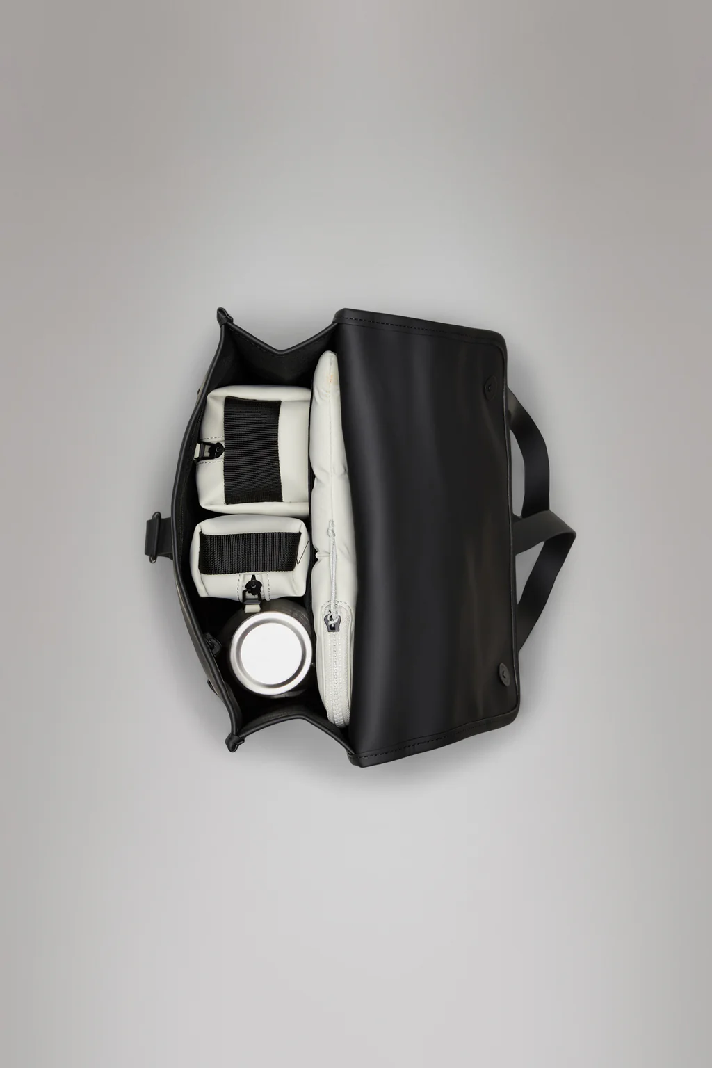 Backpack Mini is cut in Rains’ signature waterproof PU fabric, engineered for carrying strength, durability, and a smooth feel.
