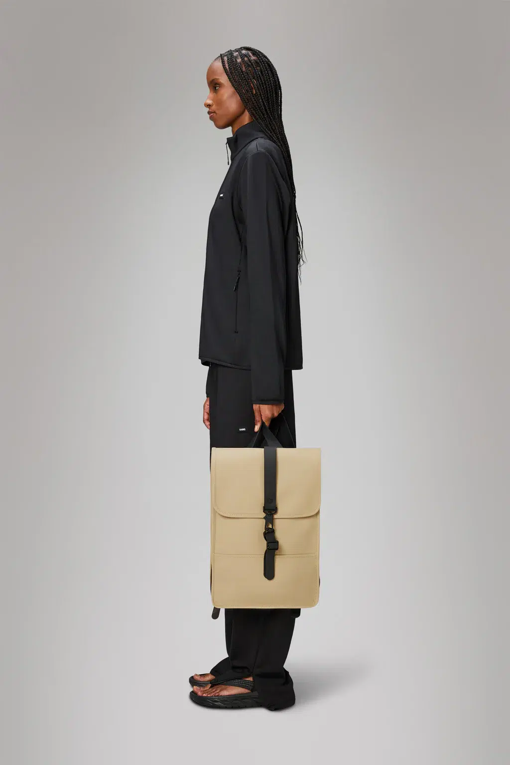 Backpack Mini is cut in Rains’ signature waterproof PU fabric, engineered for carrying strength, durability, and a smooth feel.
