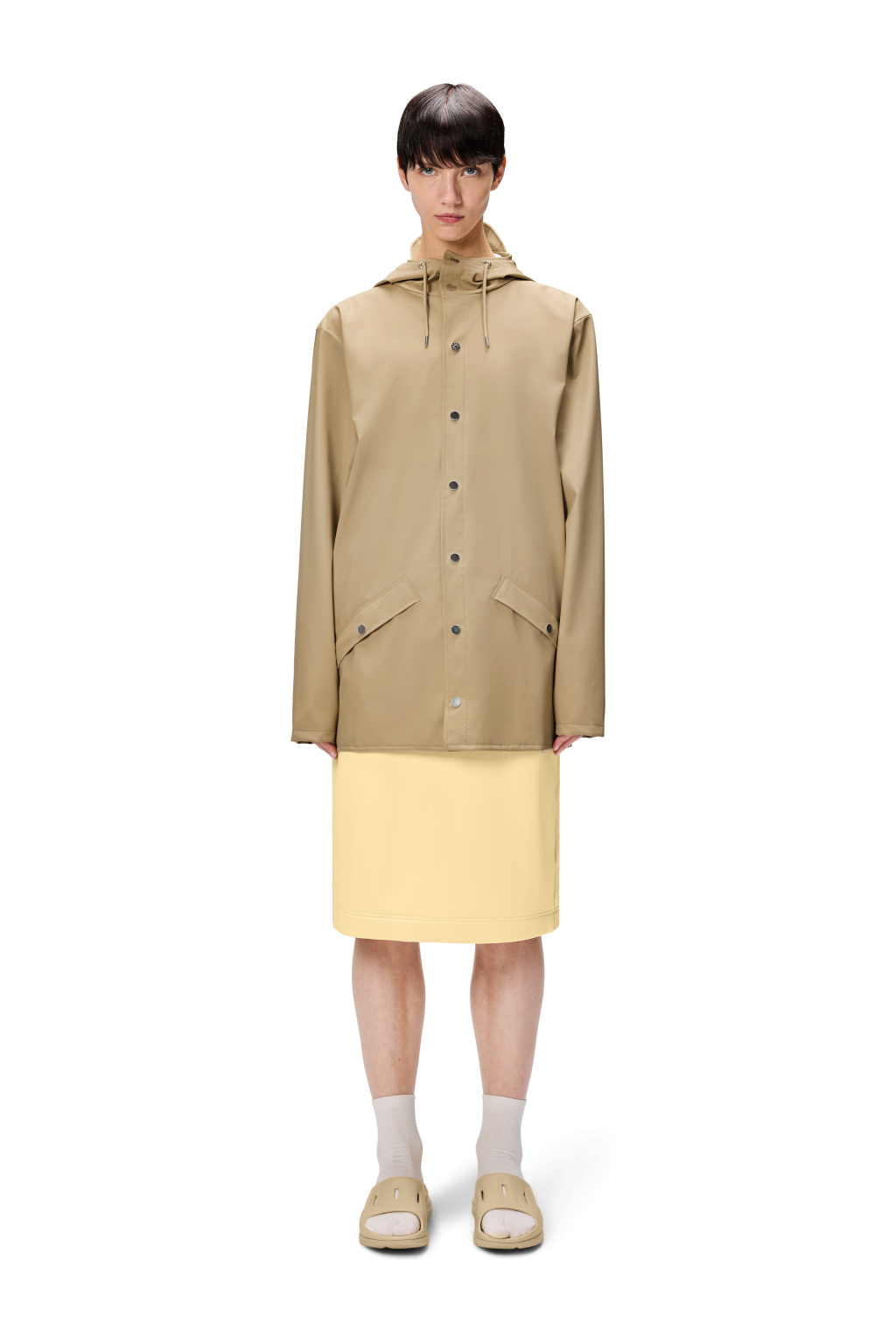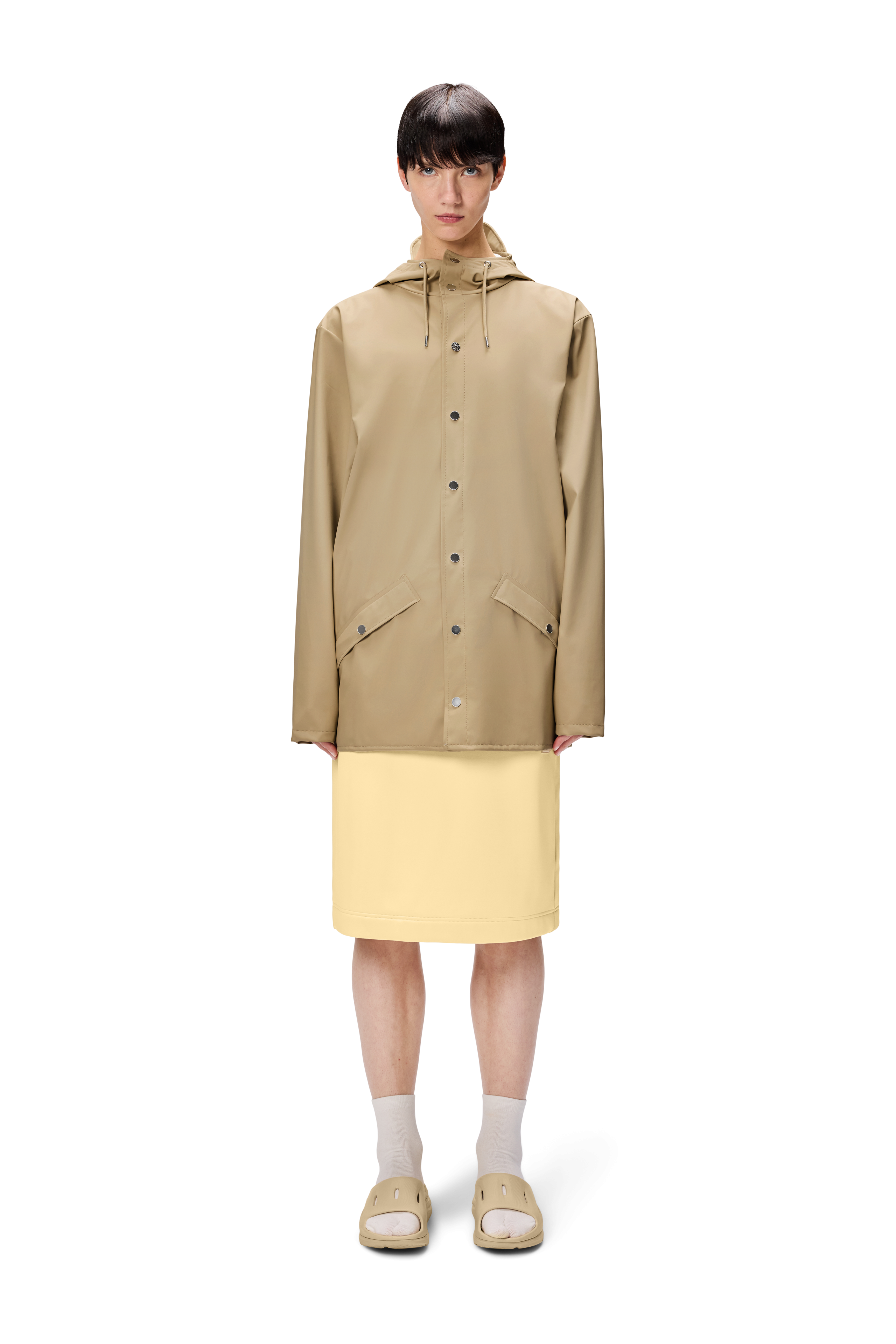 Jacket is an ever-contemporary unisex rain jacket delivering high functionality in a minimal silhouette. Features include double welded slanting flap pockets, adjustable cuffs and a fishtail hem. The look is finished with snap fastenings, under-arm eyelets, and a back yoke with concealed vents.