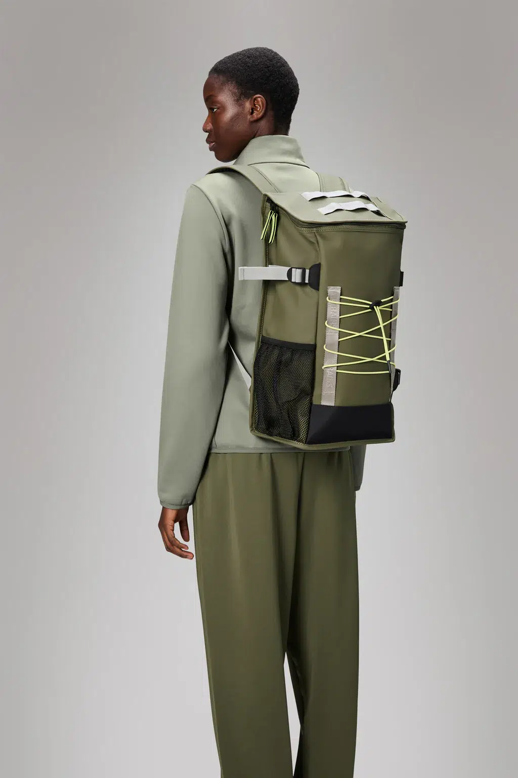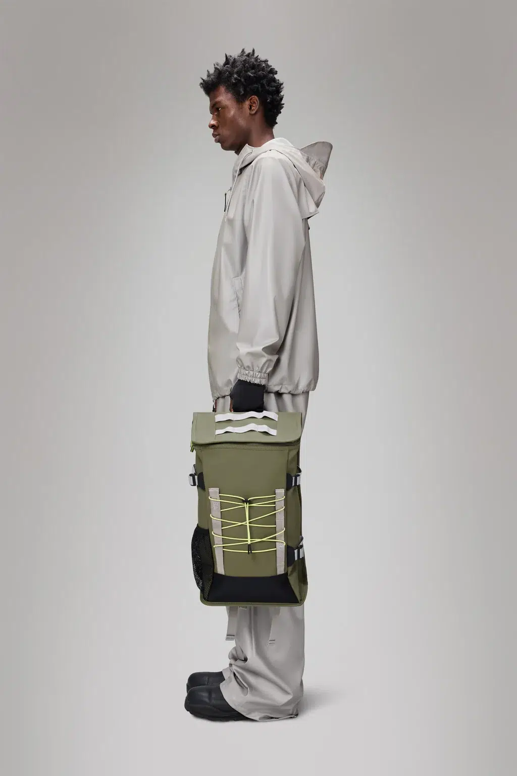 Trail Mountaineer Bag is cut in Rains’ signature waterproof PU fabric, engineered for carrying strength, durability, and a smooth feel.