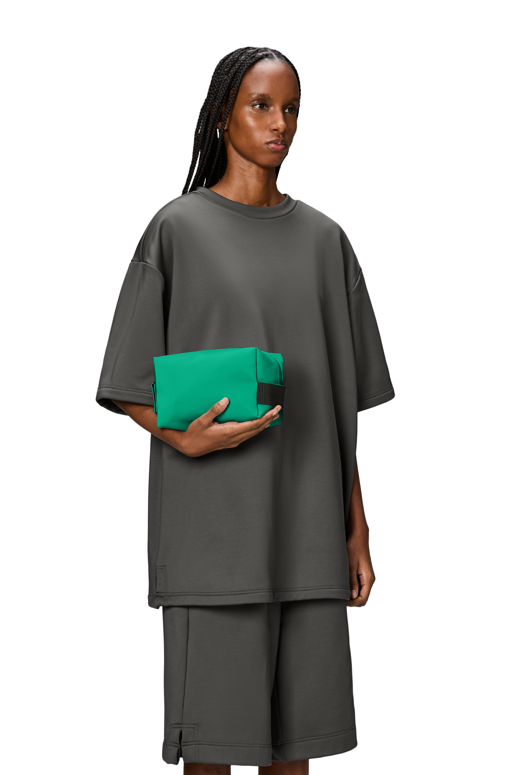 Wash Bag Small is cut in Rains’ signature waterproof PU fabric, engineered for carrying strength, durability, and a smooth feel