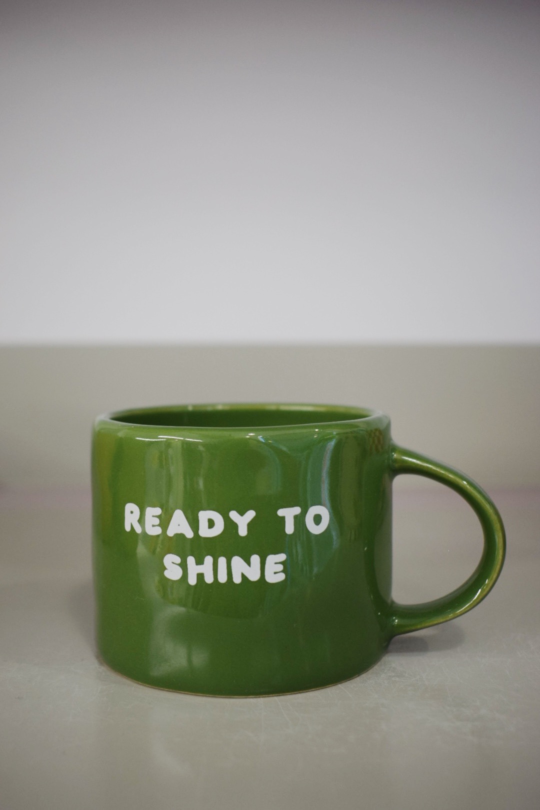 Handmade ceramic mug with the holder, 3 dcl hold in dark green colour.
