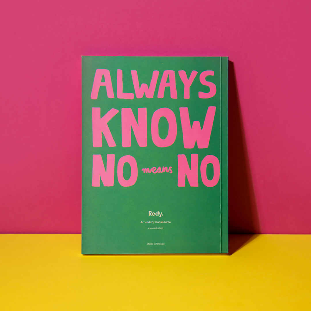 Indulge in pleasure with our ‘Wanna play?’ notebook. Illustrated with vibrant hues, it invites you to explore your sensual side. With plain inner pages, let your imagination run wild and jot down your deepest desires. And always remember, the signature at the back: “Always know, no means no.